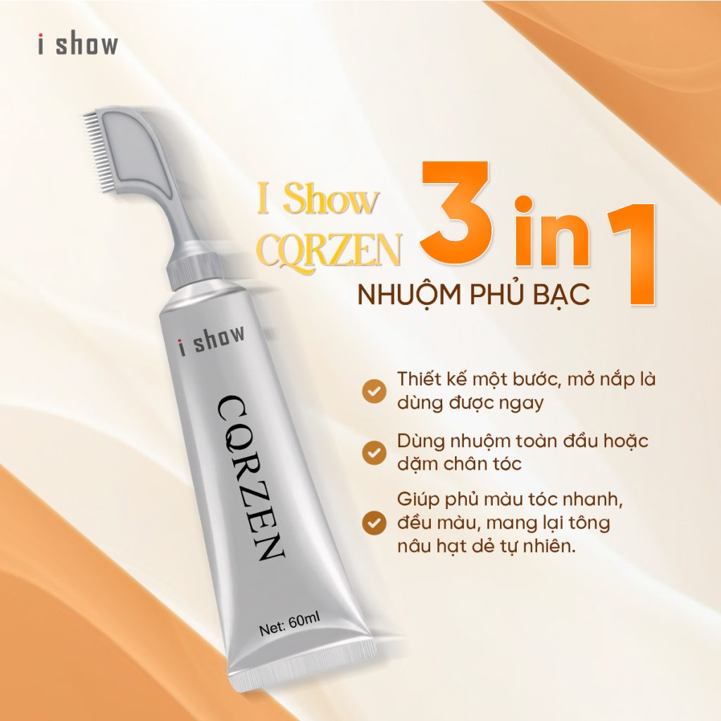 Lược nhuộm phủ bạc iShow (I SHOW CQRZEN Single Agent Hair Dye) là gel nhuộm tóc phủ bạc dạng lược thông minh, giúp: